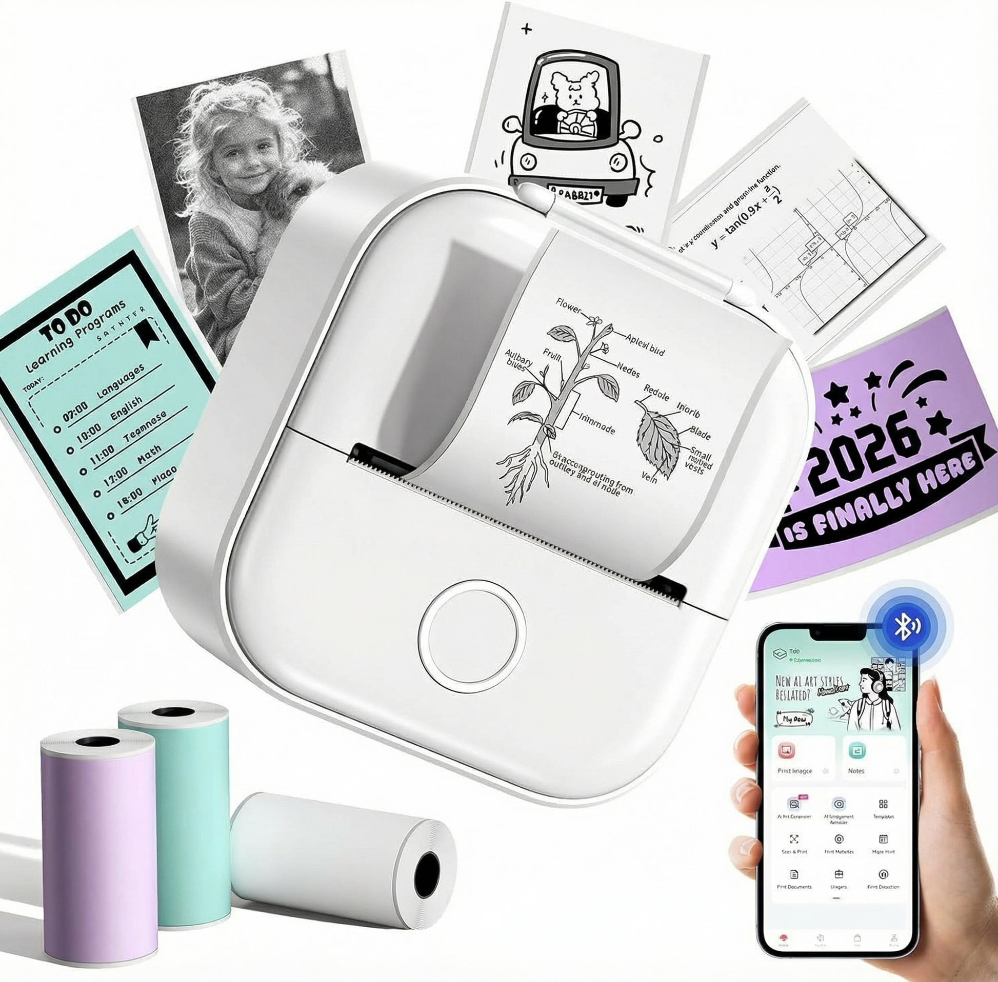 Our Portable Mini Printer utilizes advanced thermal technology to produce high-quality, inkless prints for labels, photos, and educational notes—empowering you to organize, create, and learn efficiently, anytime and anywhere.